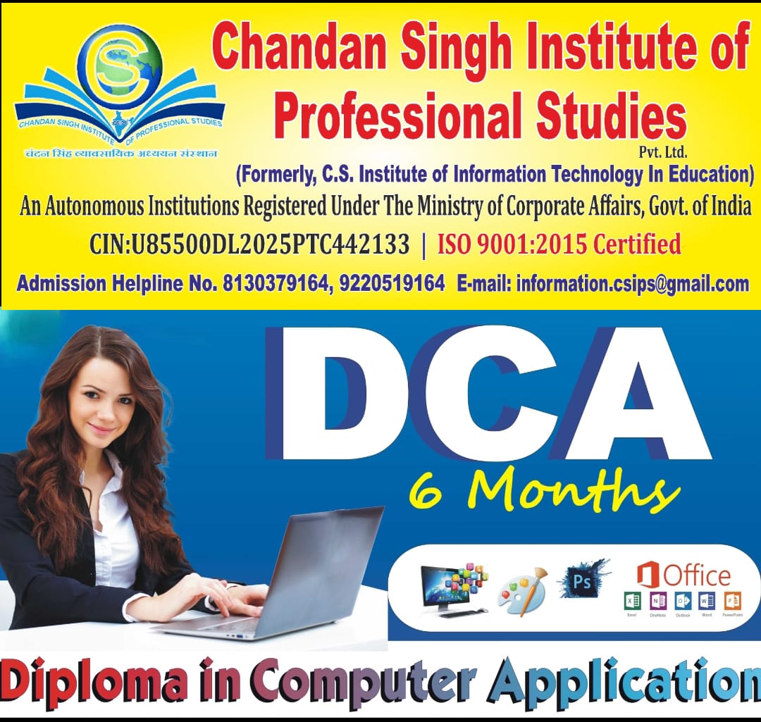Chandan Singh Institute of Professional Studies” Private Limited (Formerly, C.S. Institute of Information Technology in Education) a NIELIT partner Company. CSIPS Pvt. Ltd. is AN ISO 9001: 2015 certified Organization Regd. By Ministry of Corporate Affairs, Govt. of India. Also certified by Ministry MSME, Govt. of India.